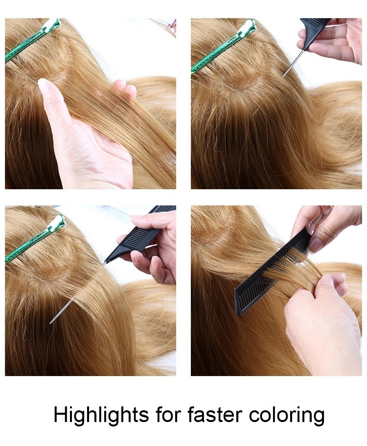 Professional highlighting comb, 26cm long (longer than others on the market). With this comb you can create beautiful soft/natural highlights or with diagonal sectioning more dimensional look. It gives perfect result in creating face frame. Easy to work with and with less pressure to your wrist as weaving is not needed. Condition is New.