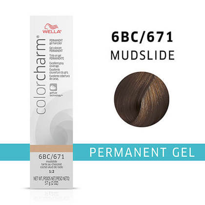 To use Wella 6BC Mudslide brown cool hair colour Mix 1 part of the Wella Color Charm gel hair colour with 2 parts Wella Color Charm developer. Apply to the hair using either bowl and brush or an applicator bottle. Develop for 30 minutes and up to 45 minutes if additional depth or grey coverage is needed.